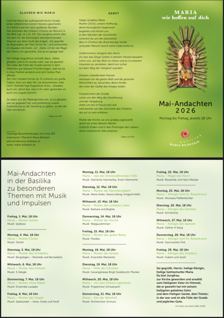 Kartenvorverkauf: Basilikabüro Bildstein T +43 (0) 5572 58367 oder E pfarramt@maria-bildstein.at