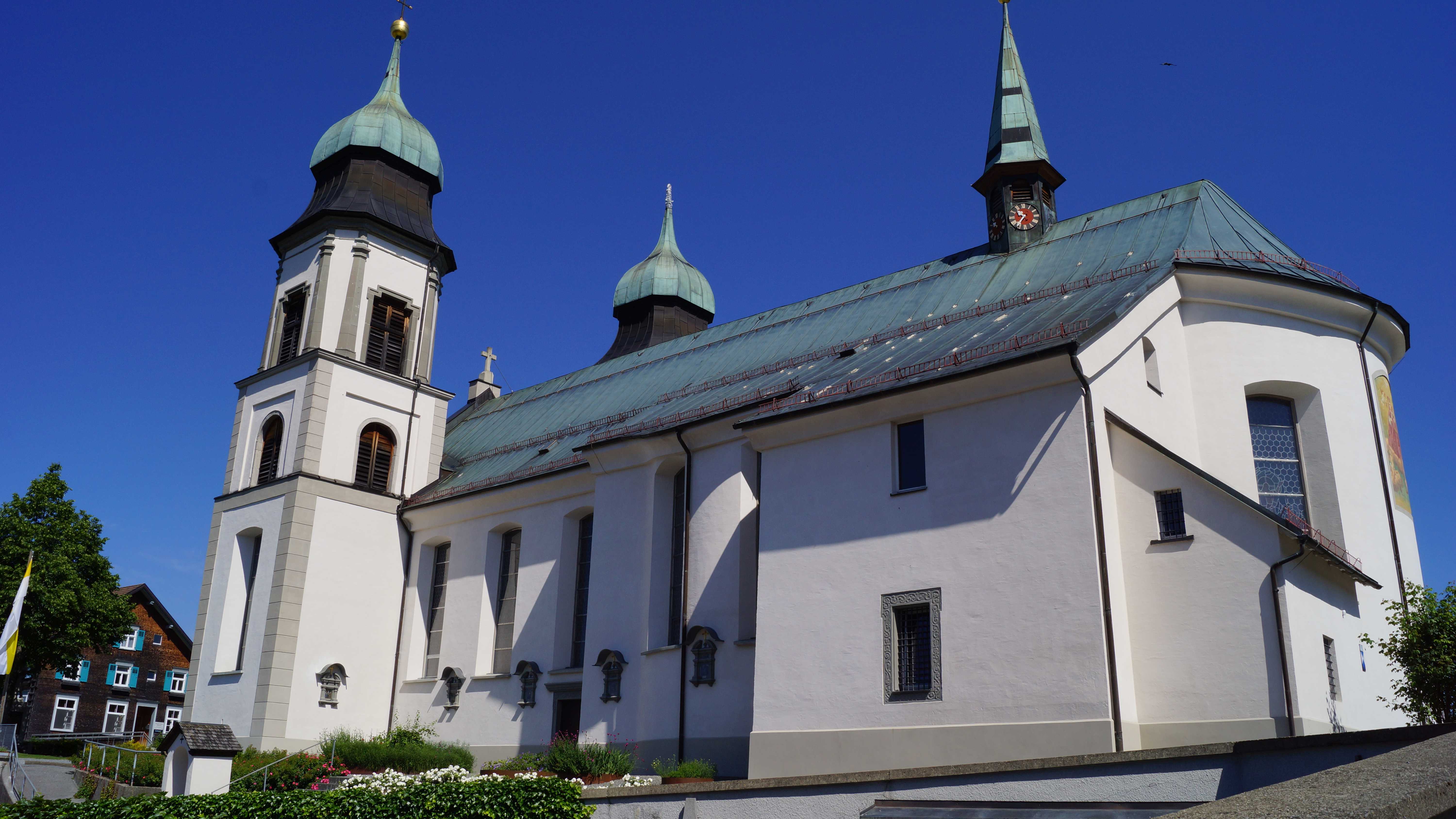 Der Weg führt von der Pfarrkirche Wolfurt (Bushaltestelle
