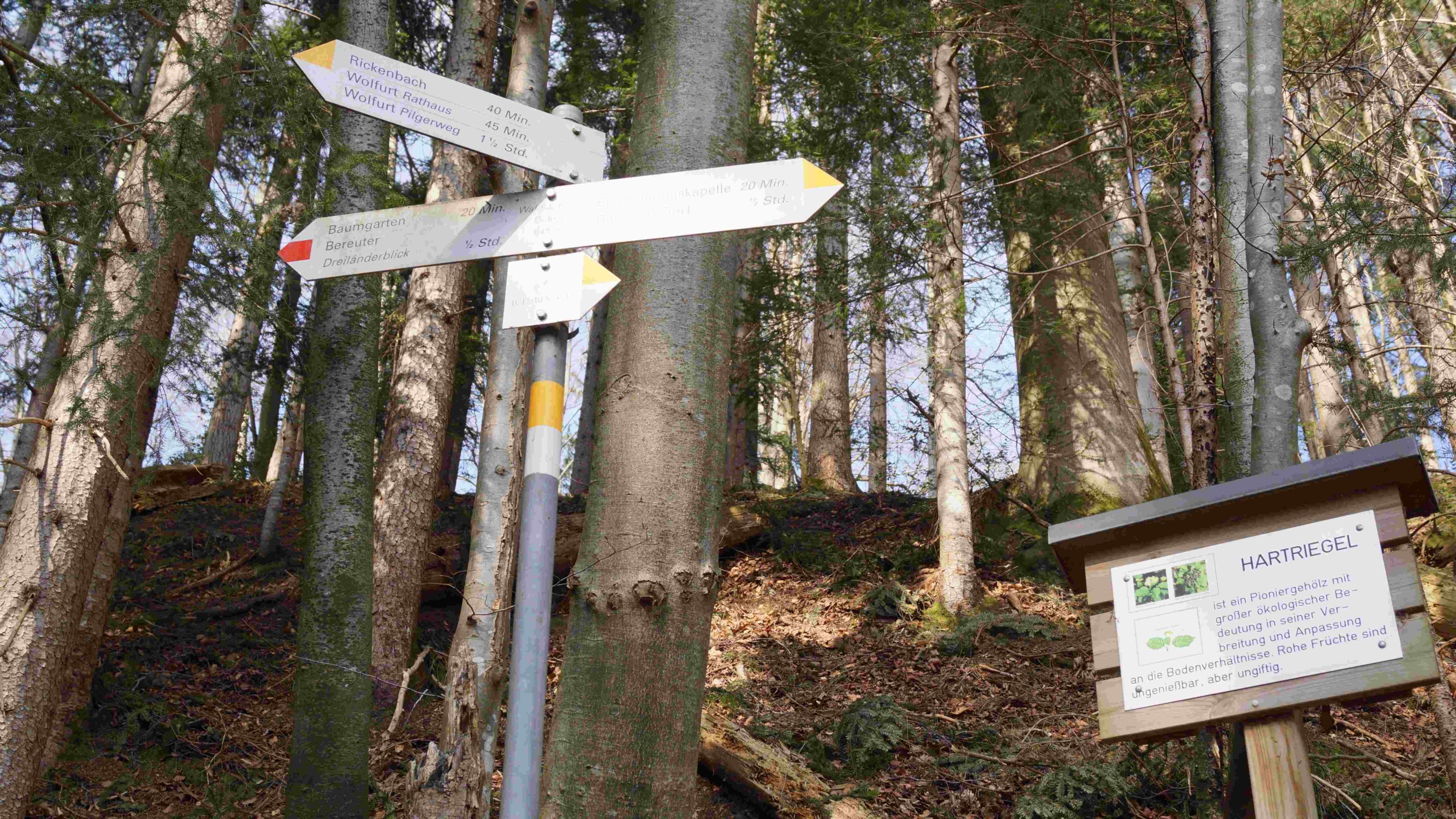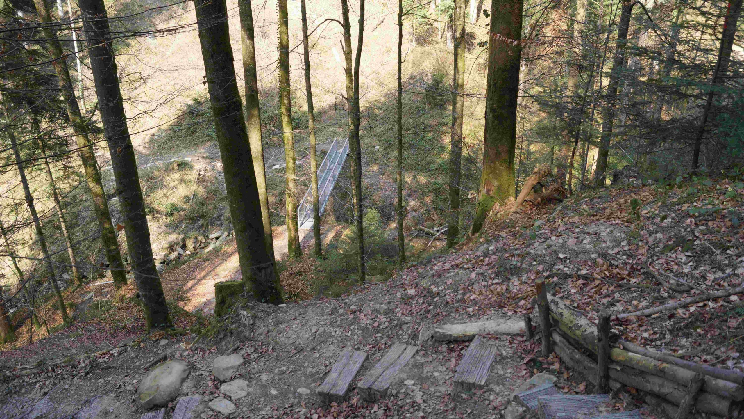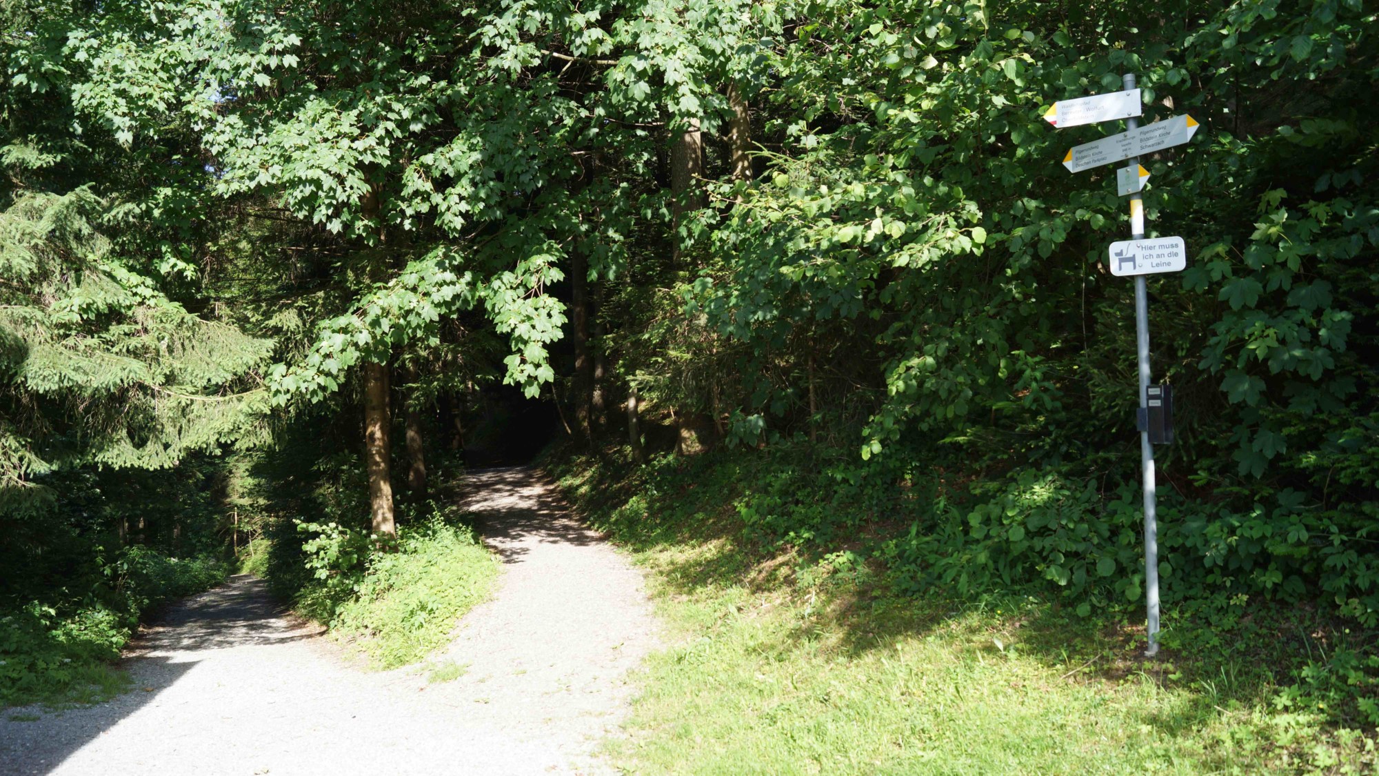 zum Forstweg Dellentobel. Durch die wildromantische Rickenbacher Schlucht kommt der Wanderer zur Erscheinungskapelle