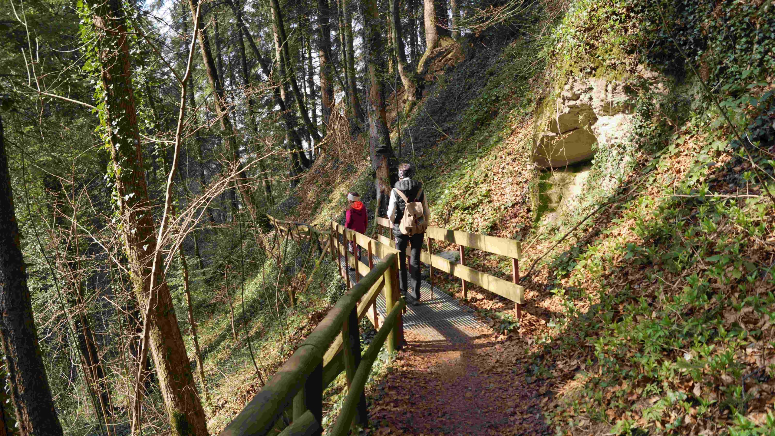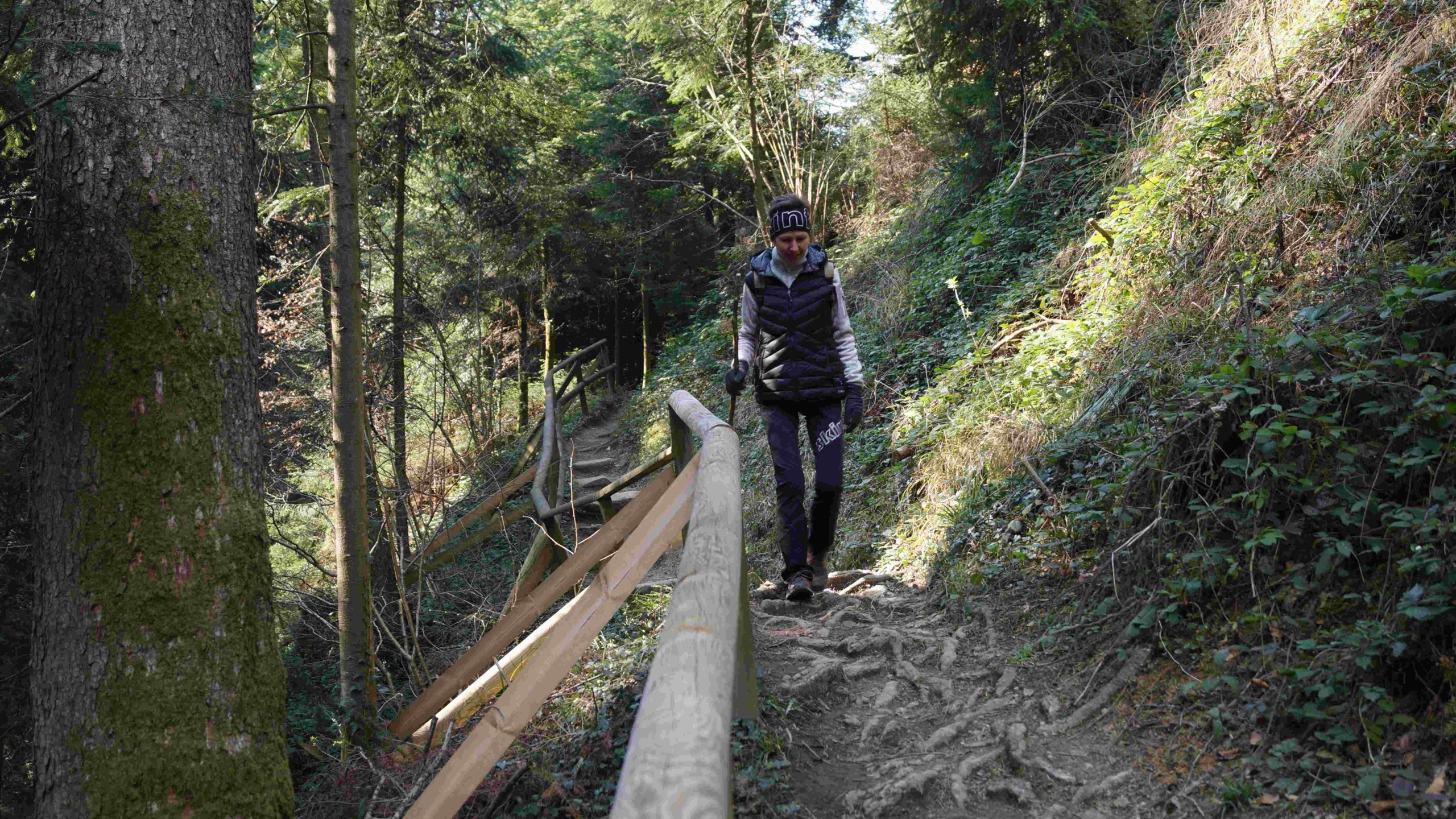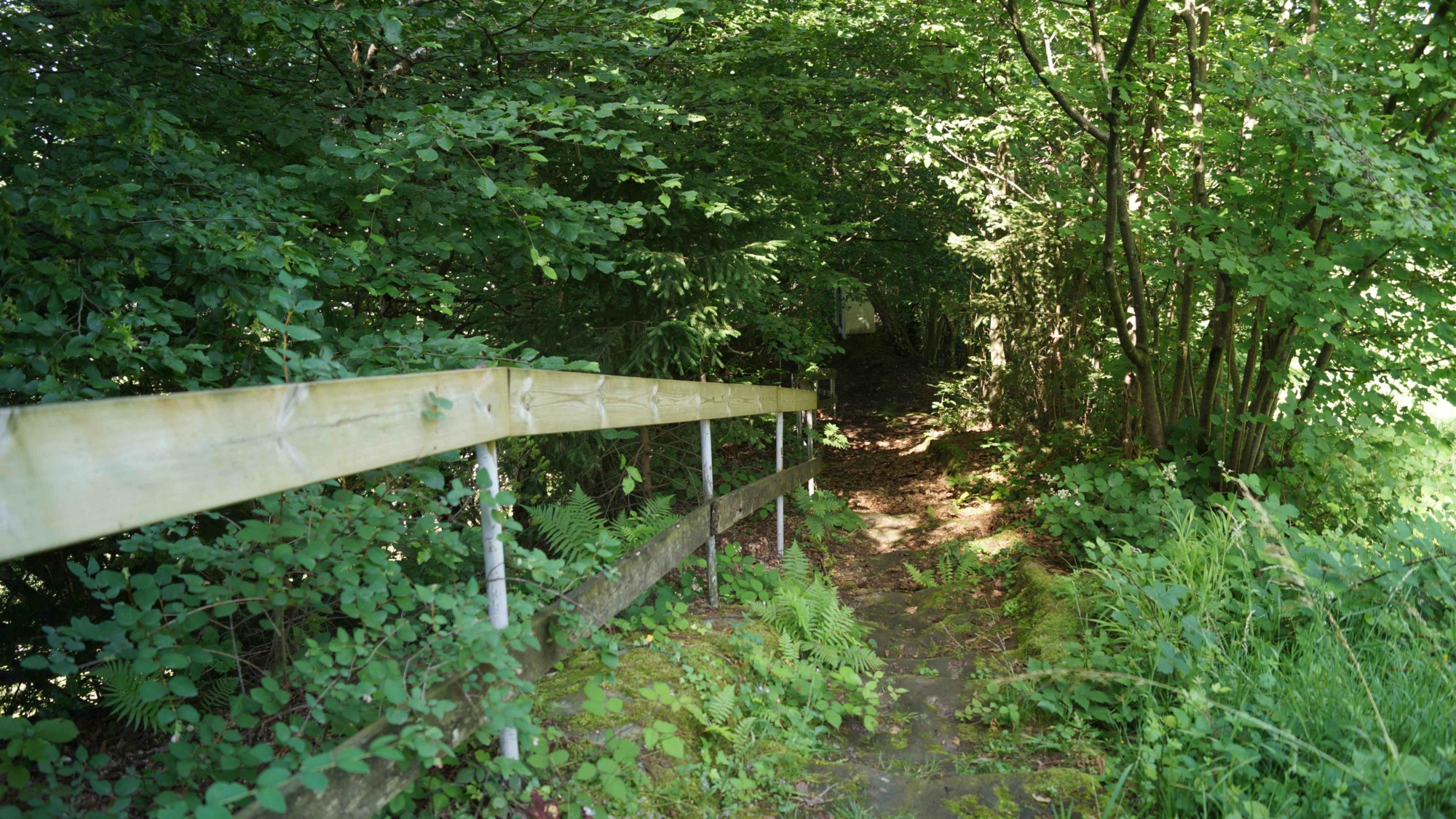 zum Forstweg Dellentobel. Durch die wildromantische Rickenbacher Schlucht kommt der Wanderer zur Erscheinungskapelle