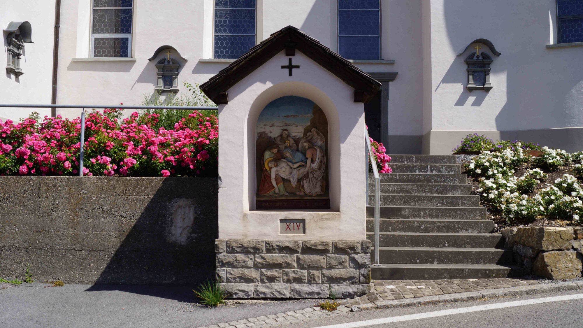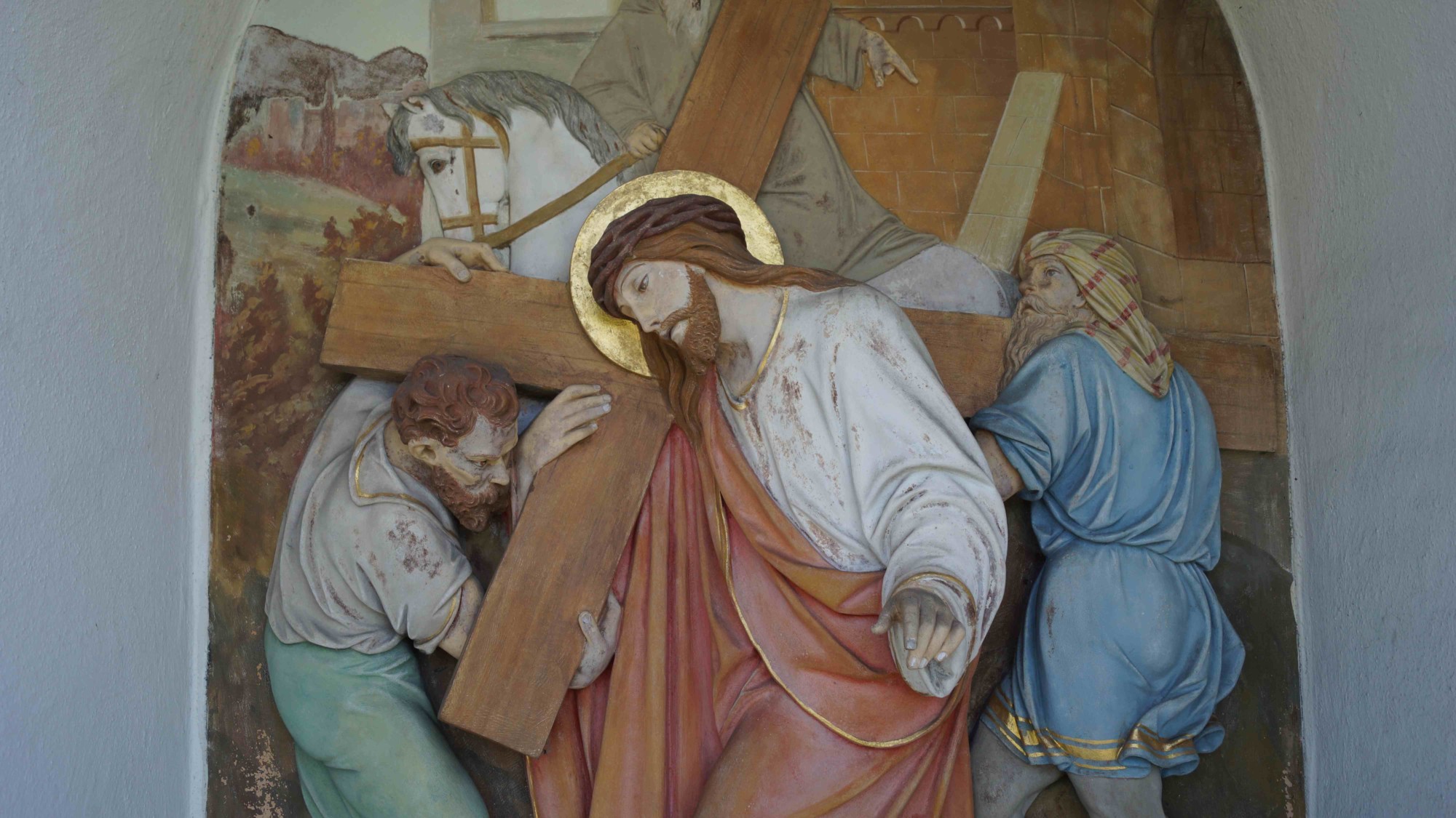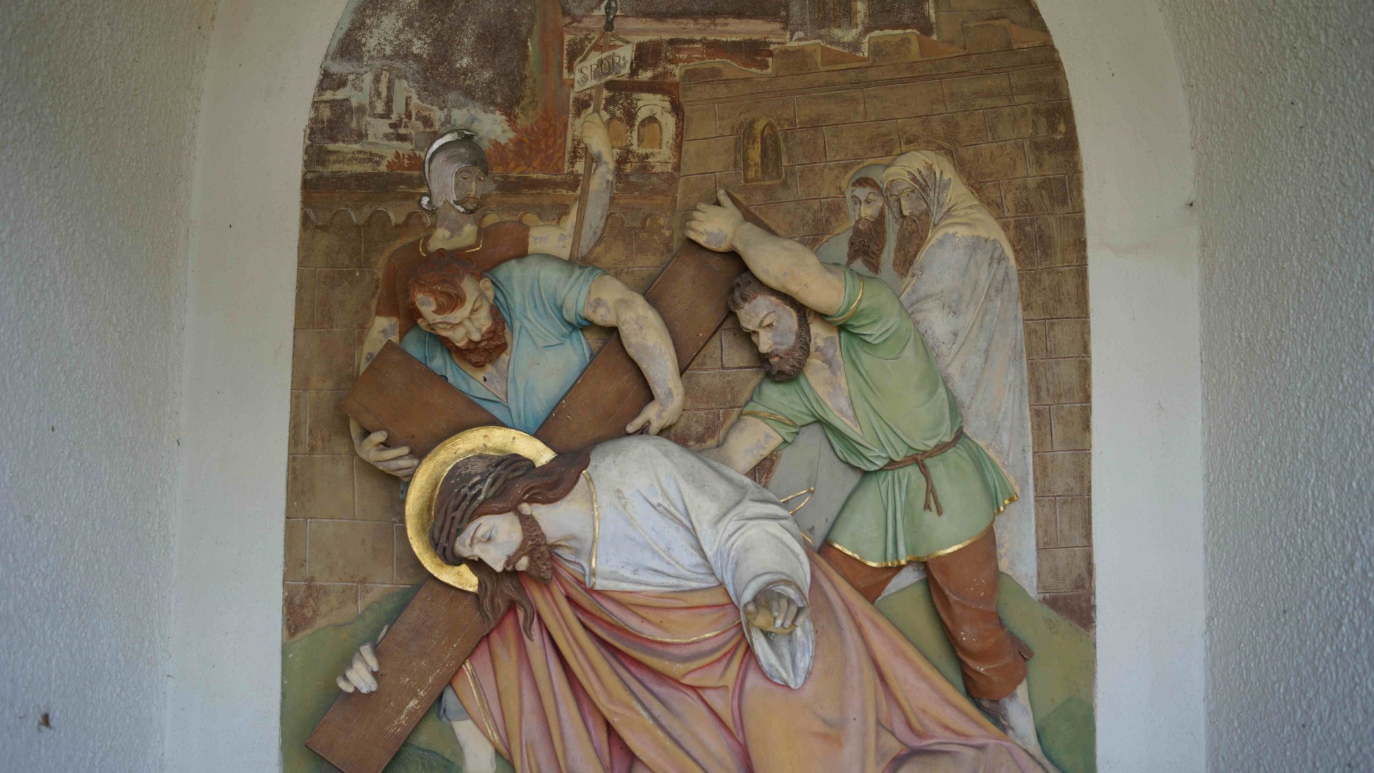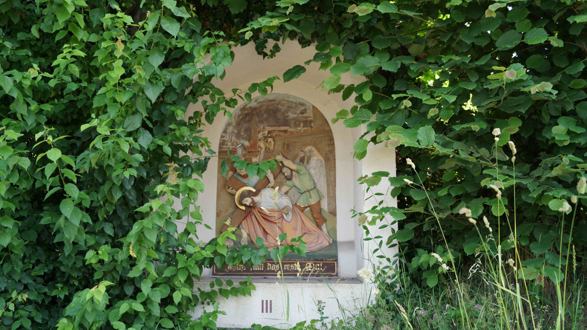 Die 14 Kreuzweg-Stationen stammen aus dem 1900 Jahrhundert und wurden 2023 von Karl Vögel neu renoviert.