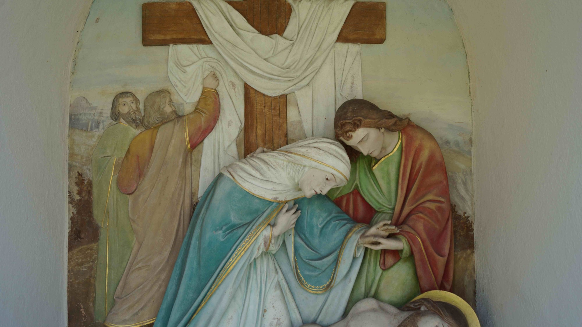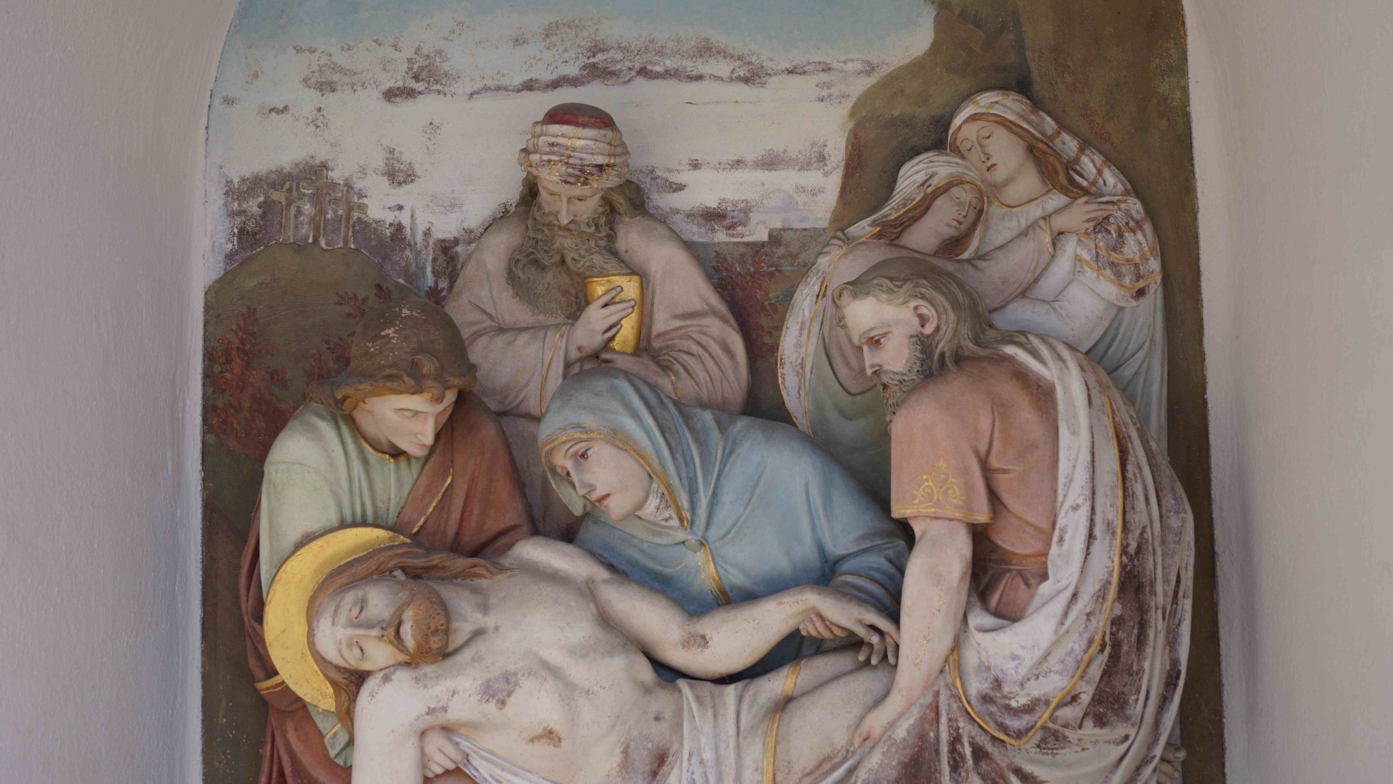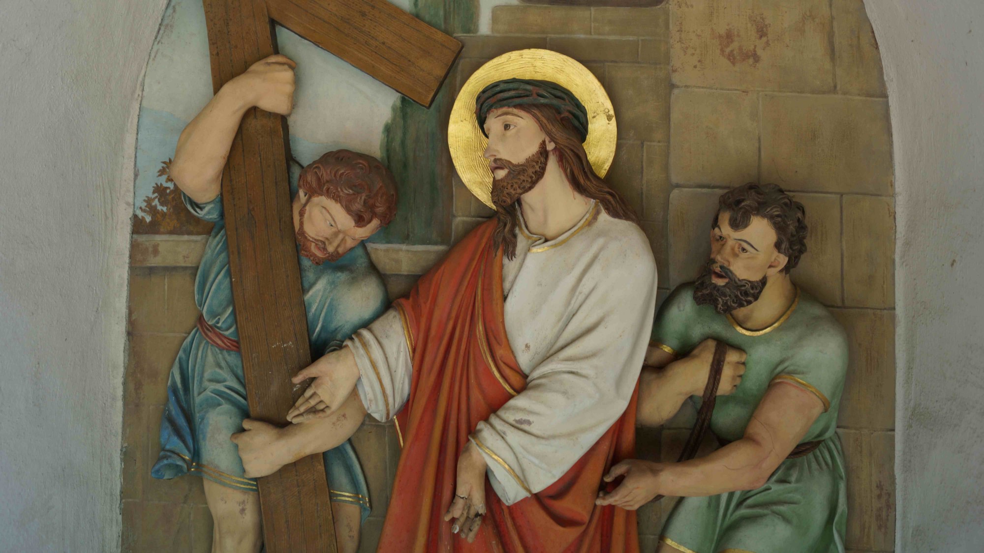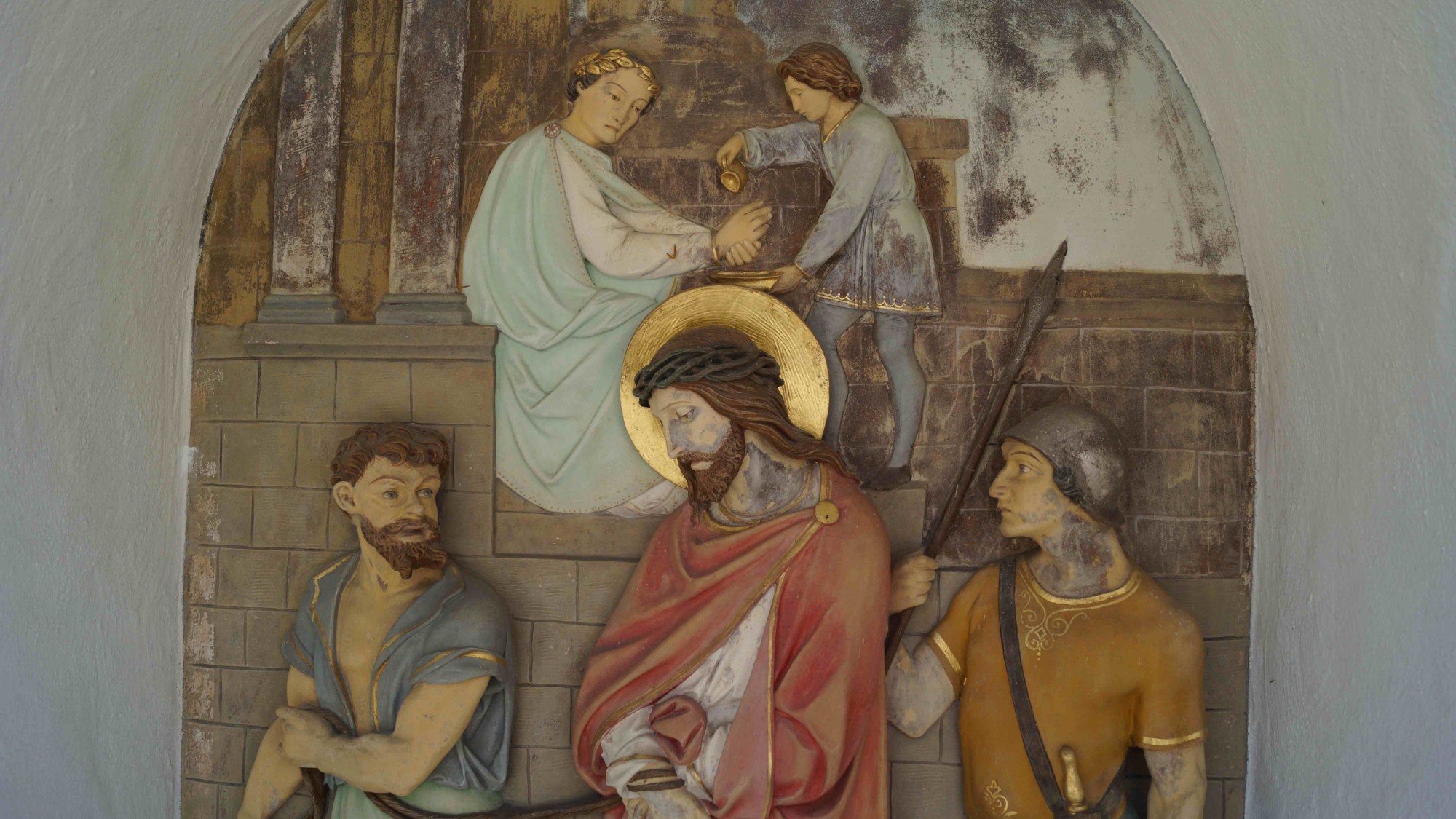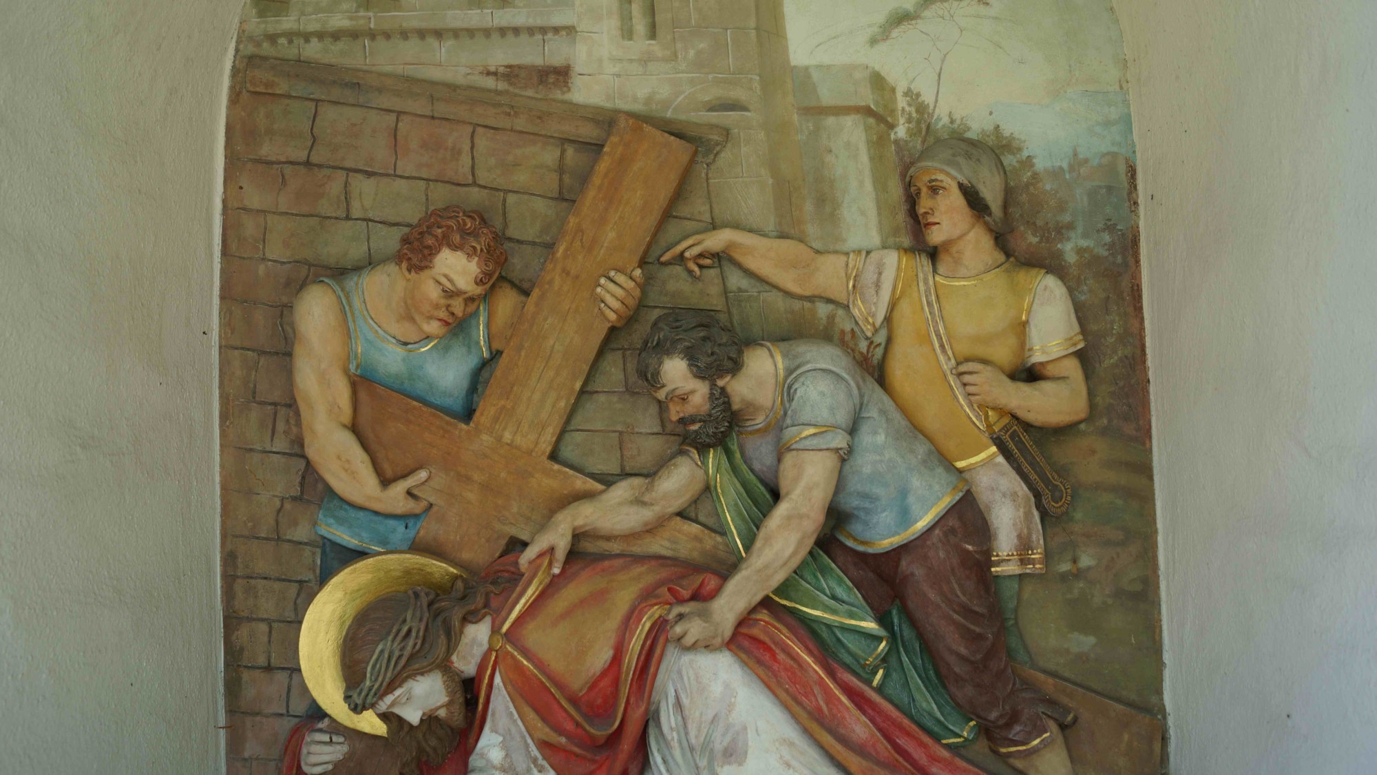 Die 14 Kreuzweg-Stationen stammen aus dem 1900 Jahrhundert und wurden 2023 von Karl Vögel neu renoviert.