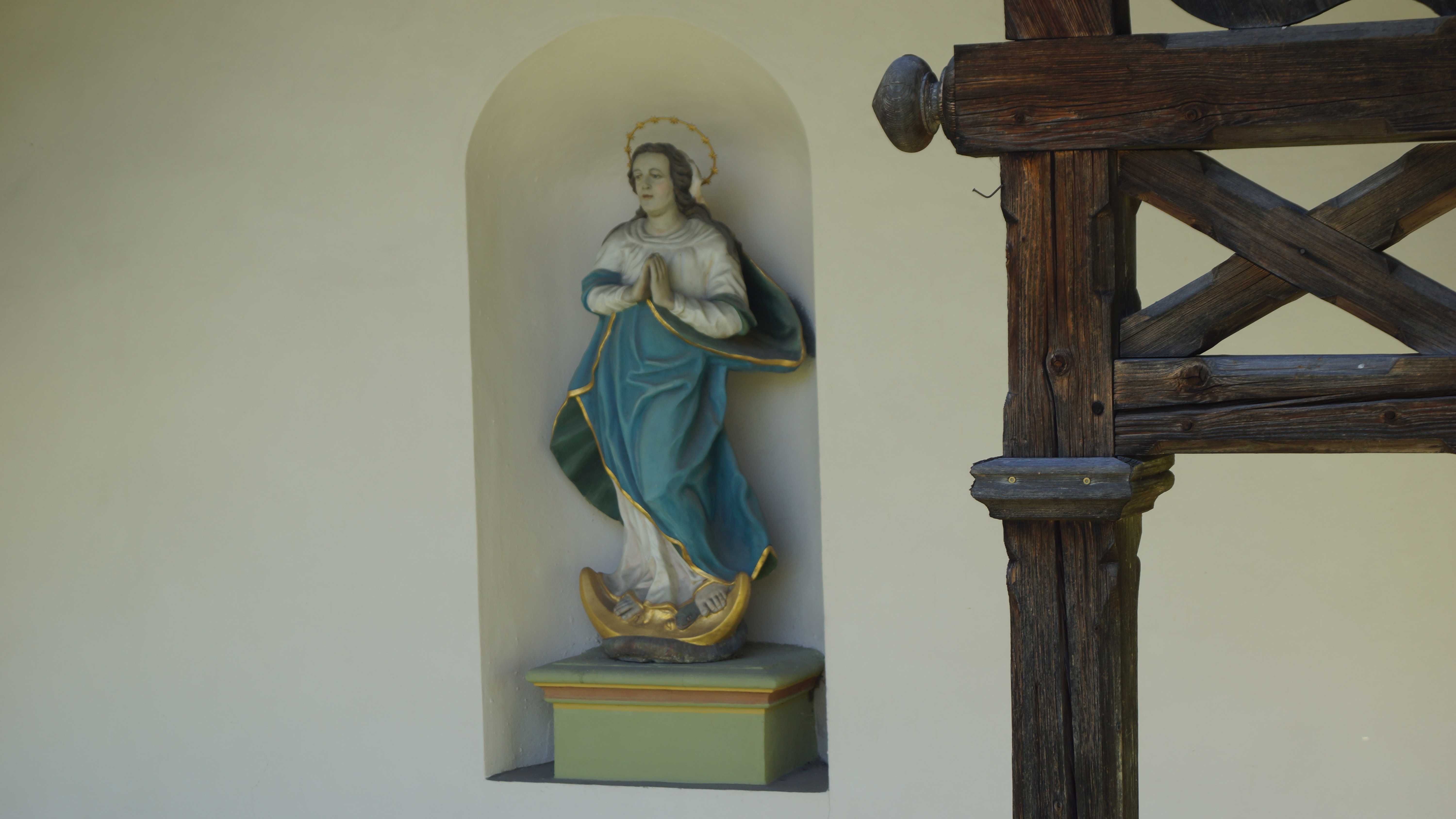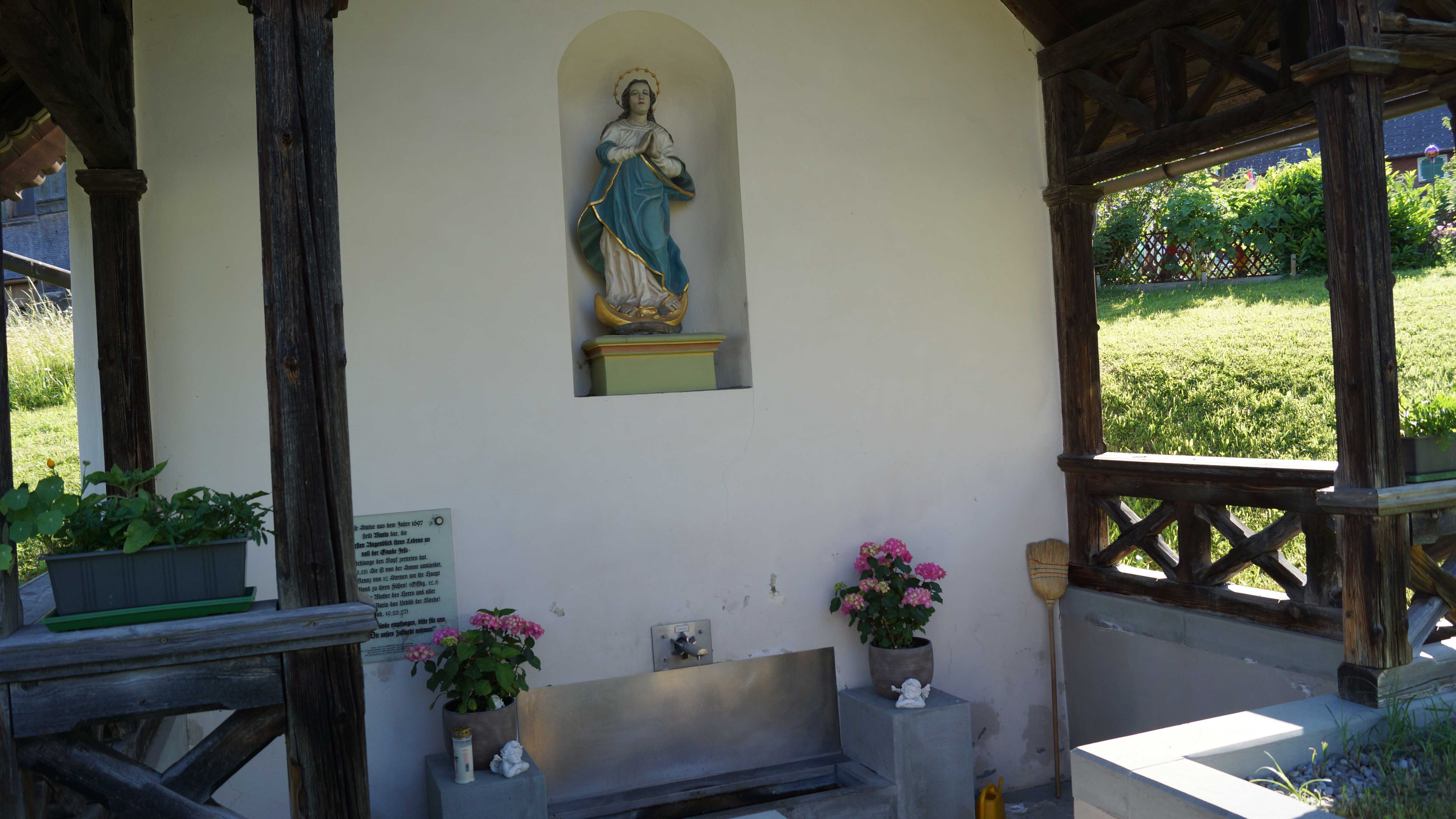 In der Nische befindet sich eine Statue der „Maria Immaculata“ aus dem Jahre 1697.